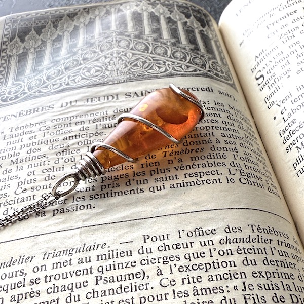 アンバー(琥珀)のシルバーペンダント