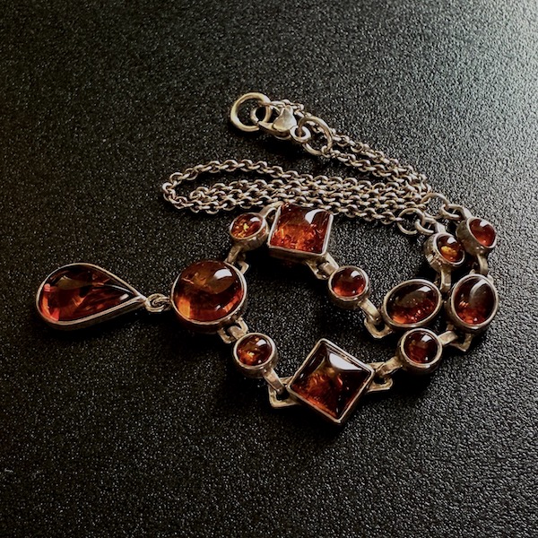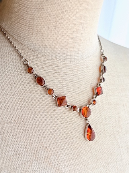 12粒のアンバー(琥珀)シルバーネックレス