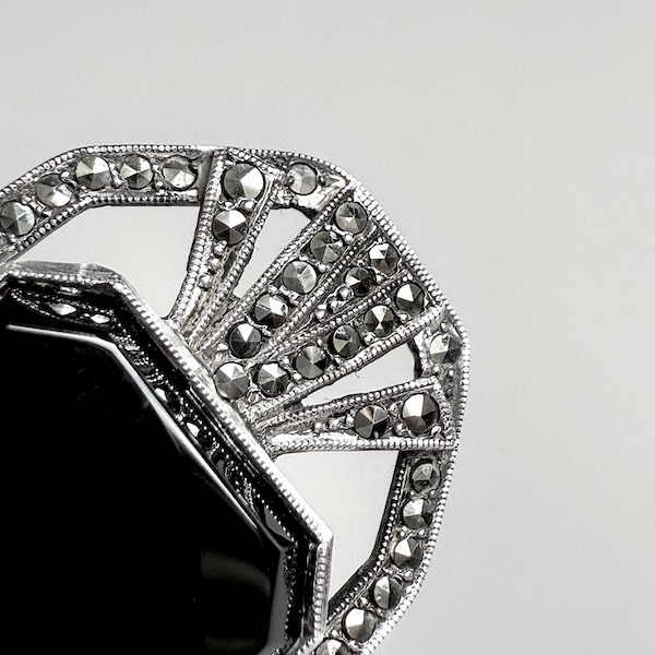 オニキス、マーカサイトのシルバーブローチ