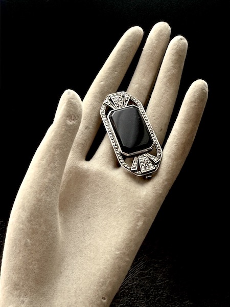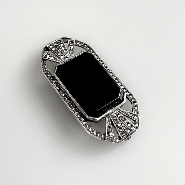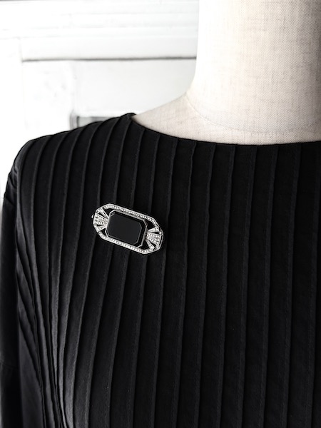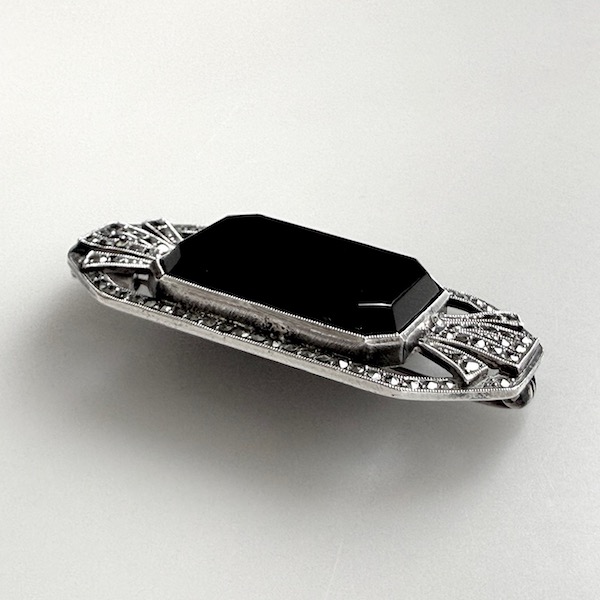 フランスアール・デコ期、1920-30年頃のブラックオニキスのシルバーブローチです。