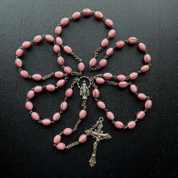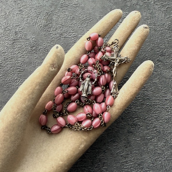 ITALY1900年代中期、半透明なピンクガラスのロザリオです。
