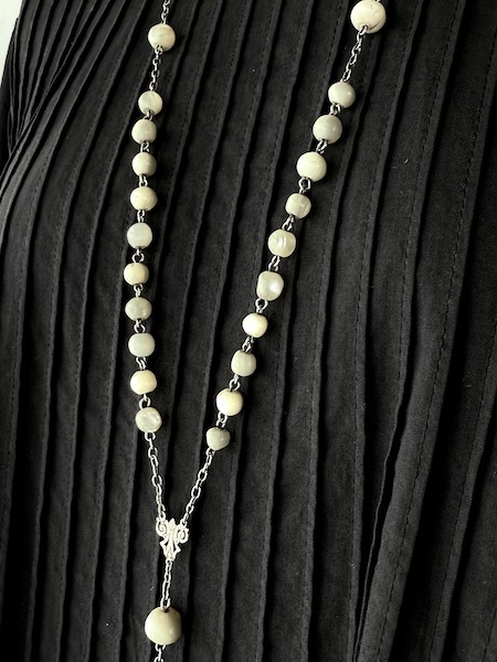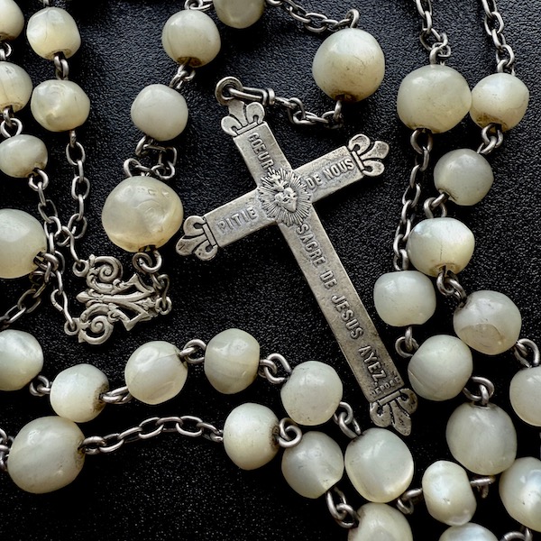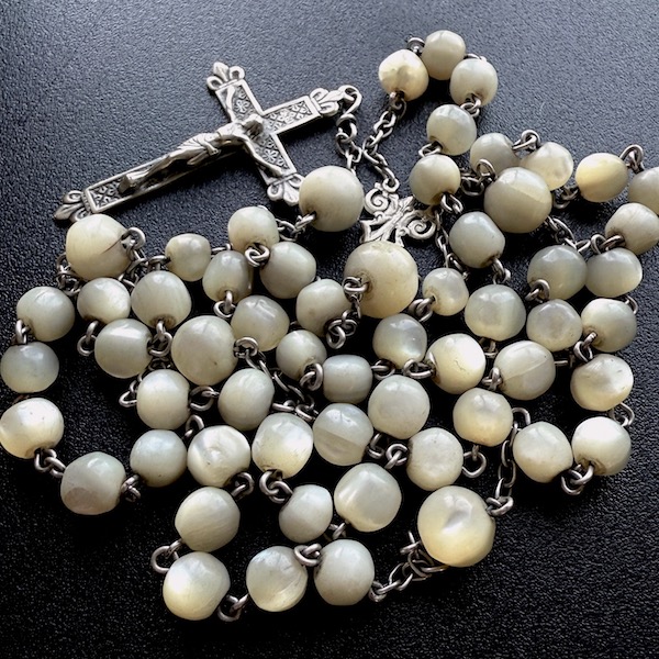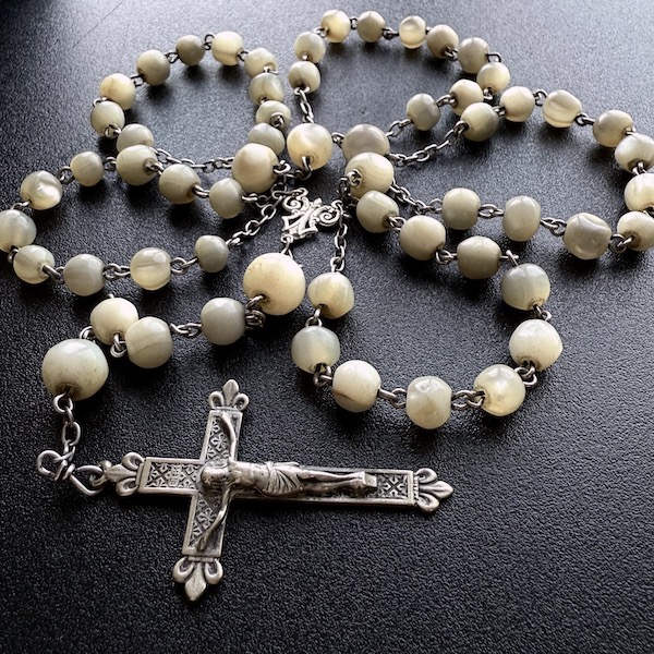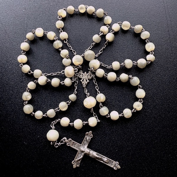 フランス1900年前後、大粒のマザーオブパール(真珠母貝)ビーズのロザリオです。