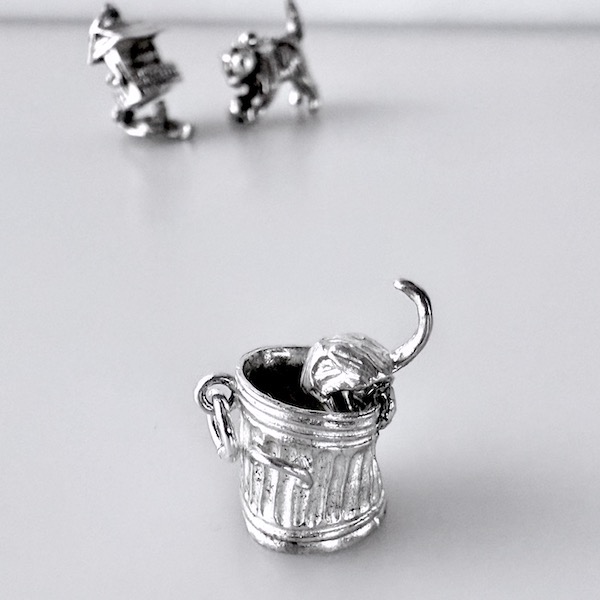 バケツを覗く猫のシルバーチャーム