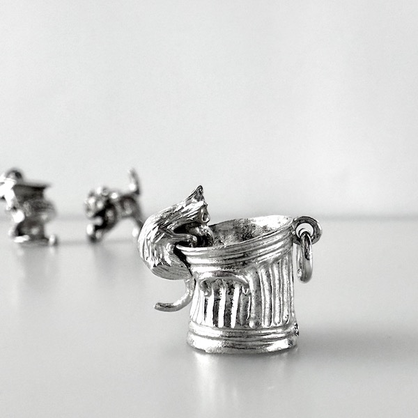ホームヴィンテージシルバーチャームバケツを覗く猫のシルバーチャーム