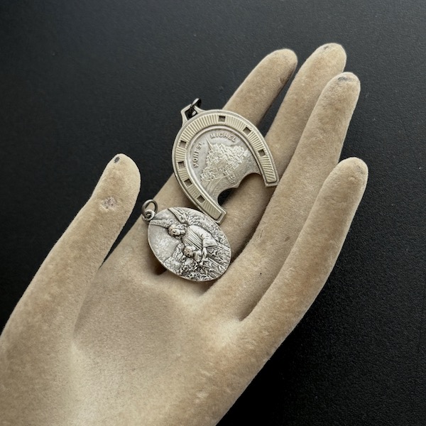 聖ジャンヌ・ダルクに神の啓示を伝えた天使であると伝えられていて、大天使ミカエルがモチーフの聖品はとても人気があります。