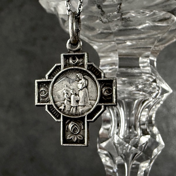 フランスアルプスのサレット村(LA SALETTE)に1846年にご出現された聖母マリアが刻まれたメダイ型クロスです。